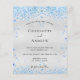 Fundo com aparência metálica prateada falsa decorado com corações azuis. Personalize e adicione seus nomes e detalhes do casamento. Letras pretas.