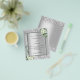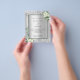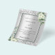 Por favor, note que este convite está no papel de folheto e é muito fino. Os envelopes não estão incluídos. Para convites mais espessos (mesmo design) visite nossa loja. Fundo de aspecto fino prateado decorado com flores brancas, flores, verde eucalipto e brilho falso prateado, faíscas. Personalize e adicione seus nomes e detalhes do casamento. Letras negras.