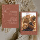 Convites de Casamento Boho Boêmia Minimalista Floral Botânica em Terracota (terra cotta) e Tom de Terra Marrom Neutro com Linha de Arte para Outono, Inverno, Primavera ou Verão com Foto ou Imagem - inclui tipografia de script bonita e elegante para a celebração do Dia Especial do Casamento.