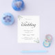 O design sofisticado do convite de casamento apresenta um buquê de folhagens de eucalipto em aquarela e um conjunto de fontes elegante e sofisticado. Visualize o link da coleção nesta página para ver todos os itens correspondentes neste lindo design.