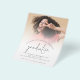 Convite de Festa de Formatura de Foto Simples em Papel 2022. Uma ótima alternativa em PAPEL (não cartão) em um tamanho MENOR 4,5” x 5,6” sem envelopes - envelopes padrão A6 são o tamanho mais próximo para caber. Um conjunto informal de tipografia em preto para o título principal Formatura complementando o restante do texto que você pode personalizar facilmente. Substitua a foto de amostra pela sua favorita.