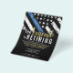 Este design apresenta uma bandeira da polícia com listras pretas e brancas, e uma fina faixa azul de linha também. O texto "A lenda está se aposentando" do ouro fica acima de todos os detalhes partidários para os detalhes do polícia aposentado, xerife, capitão ou chefe do partido aposentado.