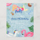 Convite de avião para uma festa de aniversário pela piscina que apresenta um unicórnio e um float de piscina flamingo. Com nossas opções fáceis de personalização, você pode fazer dessa festa de aniversário uma experiência única e personalizada para você e seus entes queridos. Junte-se a nós por um dia memorável cheio de risos, alegria e diversão da piscina!