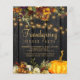 Linda cor de laranja enferrujada e escuro burgundy outono outono caia flores e bordas de abóbora com cordas de ouro brilhando sobre um fundo de madeira marrom escura fazer um charmoso janto de orçamento de Ação de Graças Amizade convite para barato com uma letra de estilo manual de ouro tipografia. ++++++++ Fácil de personalizar com seus detalhes! Adequado para a rústica tradicional | país | fazenda | reuniões familiares e amigos de quintais exteriores.