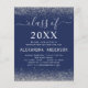 Convite de festa de formatura moderno e elegante Classe de 2023 prata e azul marinho. Este convite é perfeito para a festa de formatura do Ensino Médio ou Faculdade da menina que procura celebrar com estilo luxuoso e chique. Se precisar de itens adicionais que combinem, por favor entre em contato com o designer.