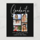 O Panfleto de Convite de Formatura com Múltiplas Fotos Elegante e Dentro do Orçamento apresenta cinco das suas fotos favoritas do seu graduado universitário ou do ensino médio com a sobreposição da fonte de caligrafia moderna e branca "Graduado". Personalize editando o texto nas caixas de texto fornecidas. Simples, elegante e sofisticado. Criado por ©Evco Studio www.zazzle.com/store/evcostudio