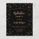 Por favor, note que este convite está no papel de folheto e é muito fino. Os envelopes não estão incluídos. Para convites mais espessos (mesmo design) visite nossa loja. Um cartão de convite glamouroso para uma festa de formatura para ele e para ela. Um fundo preto decorado com estrelas douradas falsas. Personalize e adicione um nome, ano e detalhes da festa. O texto Graduação e o nome são escritos com um script de estilo moderno, escrito à mão. Texto colorido do ouro. Fundo: fundo preto e estrelas ouros.
