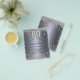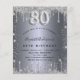Um convite moderno, elegante e glamoroso para uma festa de aniversário de 80 anos. Um fundo com aparência prateada falsa, decorado com purpurina. Personalize e adicione seu nome e detalhes da festa. O número 80 é escrito com uma fonte estilo balão, manuscrita.