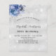 Para um 50º aniversário (ou qualquer idade) elegante. Um fundo metálico prateado falso com aparência elegante. Decorado com brilhos falsos e flores azuis. Personalize e adicione um nome, idade e detalhes da festa. O nome é escrito com uma fonte manuscrita