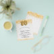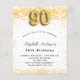 Por favor, note que este convite está no papel de folheto e é muito fino. Os envelopes não estão incluídos. Para convites mais espessos (mesmo design) visite nossa loja. Para uma festa de aniversário elegante. Um fundo branco chic. Decorado com confete de ouro falso. Personalize e adicione um nome, idade e detalhes da festa. O nome é escrito com um script de estilo manuscrito. Número 90 com letra de estilo de balão.