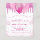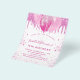 Por favor, note que este convite está no papel de folheto e é muito fino. Os envelopes não estão incluídos. Para convites mais espessos (mesmo design) visite nossa loja. Para uma festa de aniversário feminina. Um fundo branco. Decorado com brilho sujo rosa e balões. Personalize e adicione um nome e detalhes da parte. O nome é escrito com um script de estilo manuscrito