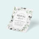 Convites de Chá de Noiva de casamento de primavera ou verão com aquarela floral branca e eucalipto greenery botânico tropical moderno - inclui uma bela e elegante tipografia de roteiro com flores botânicas tropicais modernas e folhagens para a celebração especial do casamento.