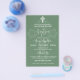 Um convite verde verde com cruz floral branca para batismo ou batizar. Personalize os detalhes e mude batismo para batizar, se preferir. Parte da coleção Floral Cross.
