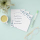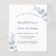 Por favor, note que este convite está no papel de folheto e é muito fino. Os envelopes não estão incluídos. Para convites mais espessos (mesmo design) visite nossa loja. Um fundo branco, decorado com caules de eucalipto azuis, cinzas. Personalize e adicione um nome e detalhes da parte. Fundo: fundo azul empoeirado.
