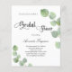Por favor, note que este convite está no papel de folheto e é muito fino. Os envelopes não estão incluídos. Para convites mais espessos (mesmo design) visite nossa loja. Um fundo branco decorado com cinzas de eucalipto verde. Personalize e o nome da noiva a ser e os detalhes da festa. Fundo verde.