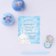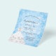 Para um Sweet 16 elegante, aniversário de 16 anos. Um fundo de flocos de neve azuis. Decorado com um vestido branco para uma festa temática de inverno mágico. Personalize e adicione um nome, idade e detalhes da festa. O nome é escrito com uma fonte manuscrita estilo caligrafia
