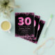 Celebre um marco em estilo com este panfleto de aniversário de 30 anos ousado com balões de folha cor-de-rosa impressionantes e um confete brilhante sobre um fundo preto elegante. Perfeito para celebrações modernas e glamourosas, esta design dá um tom festivo para o seu partido. Personalize com seu nome, detalhes do evento e informações de RSVP para criar um folheto que esteja pronto para impressionar seus convidados.
