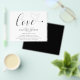 Chá de orçamento folheto de convite com a palavra "amor" na caligrafia negra com uma batida cardíaca no final, sobre um fundo branco. O layout simples e mínimo e muito espaço aberto dão a esta design um toque moderno e a letra caligráfica e os corações lhe dão uma reviravolta romântica. Esses convites para chás baratos são impressos em folhas de papel para uma opção econômica. NOTA: não incluem envelopes.
