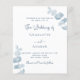 Por favor, note que este convite está no papel de folheto e é muito fino. Os envelopes não estão incluídos. Para convites mais espessos (mesmo design) visite nossa loja. Um fundo branco, decorado com caules de eucalipto azuis empoeirados, galhos. Personalize e seus nomes e detalhes. Fundo: fundo azul empoeirado.