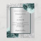 Por favor, note que este convite está no papel de folheto e é muito fino. Os envelopes não estão incluídos. Para convites mais espessos (mesmo design) visite nossa loja. Fundo de aspecto fino prateado decorado com flores verdes, flores e brilho fino prateado, brilhos. Personalize e adicione seus nomes e detalhes do casamento. Letras negras.