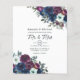 Flyer Convite para Casamento Floral de Ameixa e Marinho