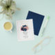 Convite para casamento floral cor-de-rosa, marinho azul e dourado com tipografia elegante personalizável para suas especificidades de evento. Os envelopes não estão incluídos. Para convites mais espessos com envelopes incluídos e produtos correspondentes no mesmo tema, consulte a coleção abaixo.