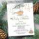 Convite/ panfleto elegante moderno rústico da natureza de inverno orçamento acessível chá de bebê estiloso modelo em um fundo branco simples com um galho de pinheiro com um pássaro de madeira, uma árvore de Natal de galhos secos com estrela e respingos de aquarela, flores de inverno e corações pequenos. ++++++++++ ENVELOPES NÃO INCLUSOS! ++++++ O convite é adequado para chás de bebê ou festas elegantes rústicas de campo no inverno.