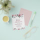 Orçamento Personalize este Rosa Dusty Blush Pink Mauve, e o Chá de fraldas Branco Elegante e Na moda Floral Watercolor ou o Convite Sprinkle em fundo branco com sua mensagem e detalhes. Este convite para na moda inclui flores rosa e verde botânico eucalipto moderno, com tipografia elegante e escrita para a celebração da Mamãe especial Be.