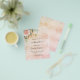 Por favor, note que este convite está no papel de folheto e é muito fino. Os envelopes não estão incluídos. Para convites mais espessos (mesmo design) visite nossa loja. Um fundo de rosa de ouro e gradiente cor-de-rosa pincelado decorado com verde de eucalipto, um rosa de cor-de-ouro e rosa-pincel, folhas de ouro e falsas gotas de relva prateada. Personalize e o nome das garotas e os detalhes da cerimônia.