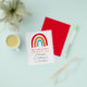 Convide pais e prestadores de cuidados a verem o seu formando de classe com este design-arco-íris fofo. Pegamos alguns de nossos designs mais populares e criamos uma verdadeira faixa de orçamento, usando papel que é normalmente reservado para os folhetos de negócios. Este papel de 80 lb x 5,6" de 4,5 pol tem um acabamento mate, é certificado FSC e um reciclado de 50%. Você precisará obter seus próprios envelopes A6 do seu estacionador local ou loja on-line. Se você preferir um estoque de papelão mais tradicional, visite nossa frente de loja ou me envie uma mensagem.