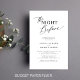 Elegante e simples, preto e branco, "a noite anterior", convite de janto para o ensaio do ORÇAMENTO, PAPER FLYER (tipo de anúncio), com um modelo clássico de caligrafia na moda. . ++++++++++++++++ LEIA ISSO ANTES DE COMPRAR! Este é um cartão de barato de orçamento impresso em um FLYER. +++ Observe que o PAPEL ORÇAMENTAL É THIN (adequado para correspondências dobradas) - Você pode fazer upgrade para que este cartão seja impresso no estoque de cartão +++ ENVELOPES NÃO INCLUÍDO. +++ Verifique todas as informações e ortografia do seu texto porque você receberá exatamente o que você vê - ninguém mais verificará nada antes de imprimir. +++ Esta placa foi projetada para o tamanho de 5,5" x 8,5". Caso você escolha outro tamanho do cartão e o texto saia da página, tudo precisa ser corrigido antes de adicionar o produto ao carrinho. ++++++++++++ Fácil de personalizar com seus detalhes! O convite é adequado para comemorações elegantes do ensaio de casamento
