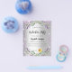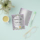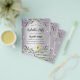 Por favor, note que este convite está no papel de folheto e é muito fino. Os envelopes não estão incluídos. Para convites mais espessos (mesmo design) visite nossa loja. Um convite moderno e na moda. Um fundo de aparência pura prateada com brilho violeta, faíscas, flores de lavanda, flores e verde de eucalipto. Personalize e adicione o nome e os detalhes da festa.