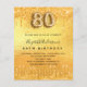 Por favor, note que este convite está no papel de folheto e é muito fino. Os envelopes não estão incluídos. Para convites mais espessos (mesmo design) visite nossa loja. Um convite moderno, na moda e glamouroso para uma festa de aniversário 80. Um fundo metálico de ouro falso com pingos de brilho falso, aparência de pingar tinta. O nome é escrito com um moderno estilo escrito à mão. Personalize e adicione os detalhes da sua festa. O número 80 é escrito com uma fonte de estilo balão, script.