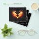 Coração de anjo com asas flamejantes em fundo preto.