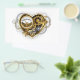 Cardíaco mecânico, volumétrico e steampunk com manômetros de pressão, de aço e de ouro sobre fundo branco. Estilo Steampunk.