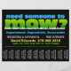 Panfleto atraente para ajudá-lo a encontrar trabalho e ganhar dinheiro extra com cuidados com o jardim. Letras em negrito e cores vibrantes que chamam a atenção de uma maneira única, "Precisa de alguém para cortar a grama?" Personalize o texto neste modelo para adaptá-lo às suas necessidades específicas. Corte entre os números para que as pessoas possam levar e ligar quando for conveniente. Pendure este panfleto em estabelecimentos da região, como delis, bibliotecas, supermercados, parques, pizzarias, etc. Esta é a época de realmente promover o seu negócio!