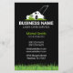 Este design de panfleto atraente é perfeito para profissionais de cuidados com jardins que desejam causar uma forte primeira impressão. Com um ícone impressionante de cortador de grama preto e branco em um fundo preto, o cartão exala profissionalismo e confiabilidade. A borda de grama verde exuberante adiciona um toque de natureza e reforça sua especialização. Com amplo espaço para o nome da sua empresa, detalhes de contato e uma lista dos seus serviços, este design é visualmente atraente e informativo.