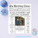 Crie O Seu Próprio Folheto Do Programa De Jornais Da Linha Do Tempo De Casamento Moderno. Torne o seu grande dia inesquecível com este personalizável folheto do programa do dia do casamento. Projetado para casais que querem um modo único e na moda de compartilhar seu dia especial, este modelo permite que você mostre sua agenda de casamento, detalhes da cerimônia, história de amor e muito mais em um layout criativo ao estilo do jornal. Perfeito como um programa de casamento, bem-vinda, ou guarde, este folheto é fácil de personalizar com seus nomes, data de casamento, informações de local e fotos personalizadas. Quer você esteja planejando um casamento na cidade quic ou uma celebração rústica, esta design moderna se adapta lindamente a qualquer tema. Recursos: modelo totalmente personalizável - adicione seu próprio texto, fontes e fotos, design moderno inspirado no jornal com o layout da linha do tempo Ideal para programas de casamento, folhetos de boas-vindas ou manobras de hóspedes com qualidade de impressão profissional em papel premium Uma maneira memorável de compartilhar sua história e agendar Dê aos seus convidados um programa que eles adorarão ler e valorizar muito depois da celebração.
