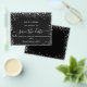 Observe que esta opção Save the date (Salvar a data) está no papel do folheto e muito fina. Os envelopes não estão incluídos. Para salvar o cartão Data (mesmo design) mais espesso, visite nossa loja. Um moderno e elegante Salve a Data para um casamento. Um fundo preto decorado com falso brilho prateado. Personalize e adicione uma data e nomes. O texto: Salvar a Data é gravado com um script de estilo com letra de tendência grande.