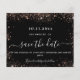Observe que esta opção Save the date (Salvar a data) está no papel do folheto e muito fina. Os envelopes não estão incluídos. Para salvar o cartão Data (mesmo design) mais espesso, visite nossa loja. Um moderno e elegante Salve a Data para um casamento. Um fundo preto decorado com rosa faux glitter. Personalize e adicione uma data e nomes. O texto: Salvar a Data é gravado com um script de estilo com letra de tendência grande.