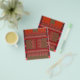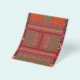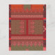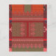 O design parece ser um design têxtil tradicional. Ele apresenta um padrão simétrico com uma coluna central e bordas intrincadas em cada lado. A paleta de cores inclui tons de terra como tons de vermelho e marrom, com motivos detalhados em branco e bege. Os padrões consistem em formas geométricas, figuras tipo diamante e elementos decorativos que se assemelham a designs florais. Este tipo de design está muitas vezes associado à arte cultural e à artesanato, mostrando a habilidade necessária para criar padrões tão detalhados e complexos. Pode fazer parte de um tapete, de uma peça de roupa ou de outra peça têxtil.