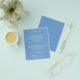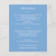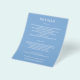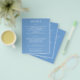 Papel de pequeno valor acessível de 80 lb. de peso, estes folhetos de detalhes de 4,5" x 5,6" apresentam suas informações em letras brancas elegantes em fundo azul ou qualquer outra cor. Maneira perfeita de incluir informações adicionais do casamento para seus convidados. O Serviço de Design ao Vivo pode ajudá-lo com o layout do design, tamanho ou ajuste da cor, se necessário.