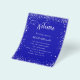 Um moderno e elegante programa de casamento, cronograma. Um fundo azul royal decorado com pó de brilho prateado falso. Personalize e adicione seus nomes e detalhes do casamento. Letras brancas. Se você tiver mais texto, é possível reduzir o espaço entre as linhas.