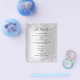 Por favor, note que este programa está no papel folheto e muito fino. Os envelopes não estão incluídos. Para programas mais espessos (mesmo design) visite nossa loja. Um programa de casamento moderno e elegante, linha do tempo. Um fundo com aparência de prata falsa decorado com falso confete prateado. Personalize e adicione seus nomes e detalhes do casamento. Letras pretas coloridas. Texto de ambos os lados.
