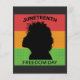 Ilustração de design do Dia da Liberdade Juneteenth em cores vermelho, amarelo e verde com fundo texturizado do padrão da bandeira Juneteenth e gráfico de menina afro-americana. Juneteenth é o verdadeiro dia da independência ou dia da liberdade do povo negro afro-americano. Celebra a libertação e abolição da escravatura nos Estados Unidos. 19 de junho de 1865 é a data em que a notícia da abolição da escravatura chegou ao estado do Texas. Ideia de presente perfeito para amigos, namorado ou namorada, etc. design perfeito para cartão de feriado, adesivo, caneca, botões, banner, pôster, folheto ou camiseta, etc.