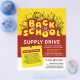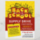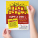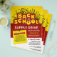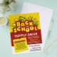 Anuncie sua Unidade de Suprimento de Volta à Escola com este folheto criativo divertido e ousado, com uma tipografia em forma de borbulha com um contorno de linhas brancas, ilustração do material escolar, nota e tons de cor vermelho e amarelo. Personalize o modelo para seu gosto.