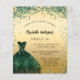 Por favor, note que este convite está no papel de folheto e é muito fino. Os envelopes não estão incluídos. Para convites mais espessos (mesmo design) visite nossa loja. Um convite moderno, na moda e glamouroso para uma doce festa de aniversário 16, 16. Na frente: Um fundo de ouro falso com um confete verde, um vestido verde esmeralda. O nome é escrito com um moderno estilo escrito à mão. Personalize e adicione os detalhes da sua festa.