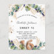 Por favor, note que este convite está no papel de folheto e é muito fino. Os envelopes não estão incluídos. Para convites mais espessos (mesmo design) visite nossa loja. Para uma doce 16, 16ª festa de aniversário. Um fundo branco decorado com verde de eucalipto e folhas de ouro. Pontos de brilho falsos do ouro. Personalize e adicione seus nomes e detalhes do casamento. Letras pretas e ouros coloridas. O número 16 é escrito com a fonte do estilo do balão. Traseira: fundo branco e pontos brilhantes de falso ouro.