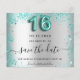 Por favor, note que esta data está no papel folheto e muito fina. Os envelopes não estão incluídos. Para cartões salve a data mais espessos (mesmo design) visite nossa loja. Uma moça e moda Salvem a data para uma doce festa de aniversário 16, 16. Um fundo com aparência de prata falsa, decorado com pó brilhante verde e lacrimejante. Personalize e adicione uma data e nome/idade. O texto: Salvar a Data é gravado com um script de estilo com letra de tendência grande. Número 16 com uma fonte no estilo do balão.