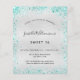 Por favor, note que este convite está no papel de folheto e é muito fino. Os envelopes não estão incluídos. Para convites mais espessos (mesmo design) visite nossa loja. Para um doce elegante 16, 16 anos. Um fundo metálico falso prateado. Decorado com pó de faísca lacrimogênea. Personalize e adicione um nome, idade e detalhes da festa. O nome é escrito com um script de estilo manuscrito